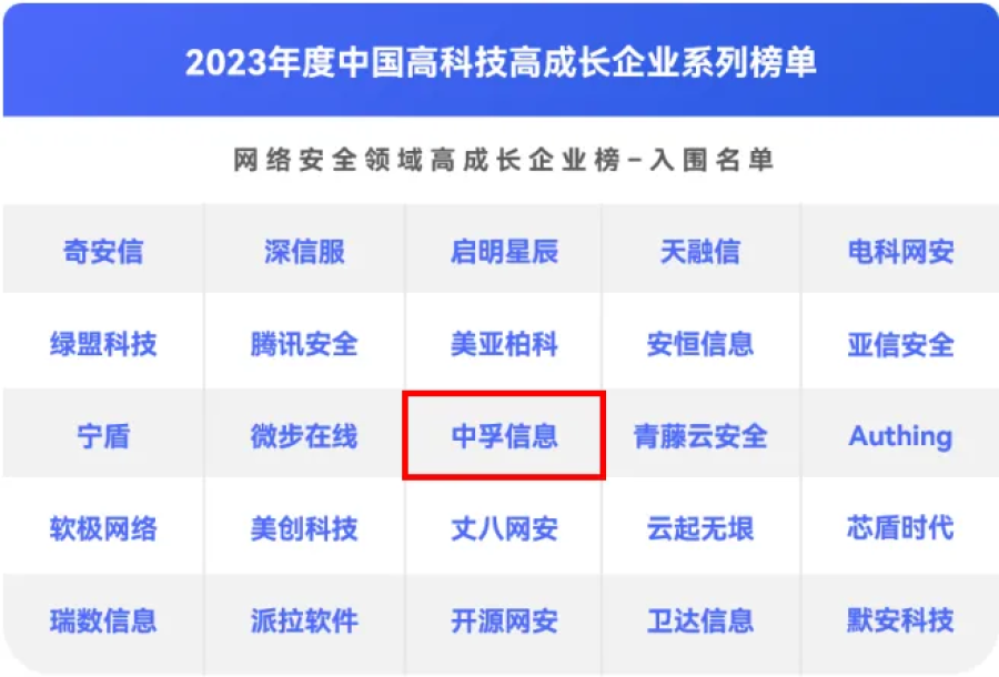 近日,第一新声&天眼查联合发布了2023年度中国高科技高成长企业系列榜单,星空体育信息凭借先进的技术创新能力和专业的服务能力,再次获得评审组专家的高度认可,荣登「网络安全领域高成长企业榜」榜单。
