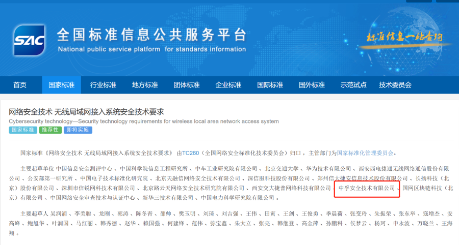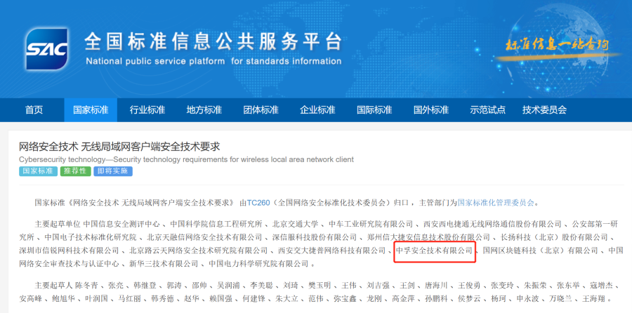 凭借对电磁空间安全(无线安全)产品的研发经验,星空体育深度参与两项国家标准的编制。两项标准分别定义了无线局域网客户端和无线局域网接入系统的安全目的,规定了无线局域网客户端及接入系统的安全功能要求和安全保障要求,均适用于无线局域网客户端和接入系统相关产品的测试、评估和采购,也可用于指导相关产品的研制和开发。
