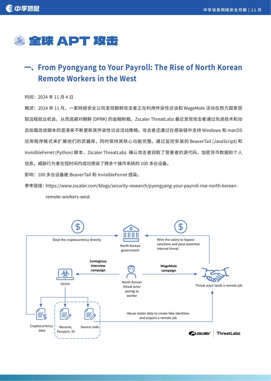 其中,地缘政治冲突仍是APT组织的首要攻击背景,与之相关的攻击活动非常活跃,分别有:From Pyongyang to Your Payroll: The Rise of North Korean Remote Workers in the West; Breaking Down Earth Estries' Persistent TTPs in Prolonged Cyber Operations;Russia-Aligned TAG-110 Targets Asia and Europe with HATVIBE and CHERRYSPY等。